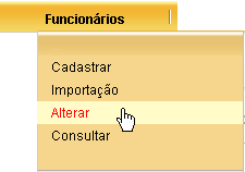 Você pode alterar os dados dos funcionários cadastrados selecionando a opção FUNCIONÁRIOS à ALTERAR.