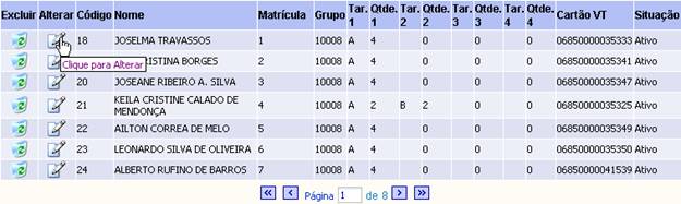 2. Na exibição do resultado utilize os ícones de navegação de visualizar todos os funcionários que deseja alterar.