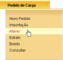 Você pode alterar os pedidos de carga que ainda não foram enviados para a Central, selecionando a opção PEDIDO DE CARGA à ALTERAR.