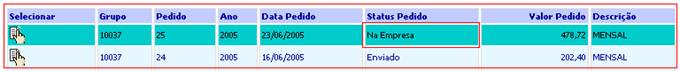 2. Selecione o pedido que deseja alterar clicando no botão de selecionar (1ª coluna).