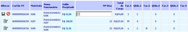 10. Clicando no botão TODOS CARREGAM os dados de carga são atualizados e todos os cartões serão carregados para o número de dias informado no campo “Nº de dias”.