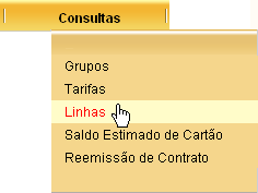 Você pode consultar as linhas selecionando a opção: CONSULTAS à LINHAS.
