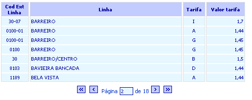 Utilize os ícones de navegação para visualizar as linhas que deseja consultar.