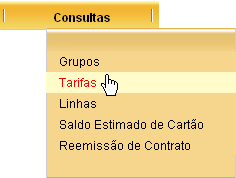 Você pode consultar todas as tarifas de transporte cadastradas selecionando a opção: CONSULTAS à TARIFAS.