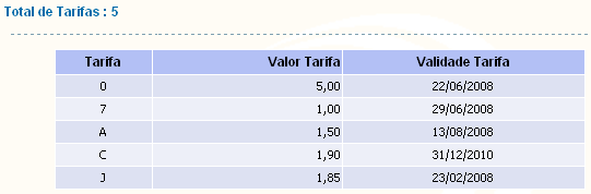 As tarifas exibidas são cadastradas no VTDIRETO e correspondem às tarifas praticadas em sua região com a respectiva data de validade.