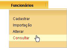 Você pode consultar os dados dos funcionários cadastrados selecionando a opção FUNCIONÁRIOS à CONSULTAR.