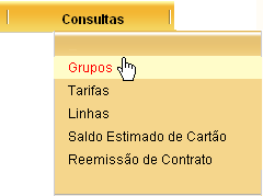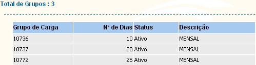 Você pode consultar os grupos de cargas selecionando a opção: CONSULTAS à GRUPOS.