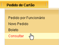 Você pode consultar os dados e pedidos de cartões selecionando a opção PEDIDO DE CARTÃO à CONSULTAR.