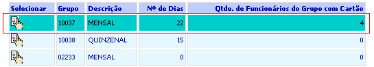 2. Para fazer um novo pedido, selecione o grupo de carga clicando no botão de selecionar (1ª coluna).