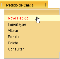 Para criar novo pedido de carga para os cartões de VT, você deve selecionar a opção PEDIDO DE CARGA à NOVO PEDIDO.