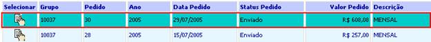 4. Selecione o pedido de crédito que foi enviado para o VTDIRETO, clicando no botão de selecionar (1ª coluna).