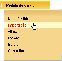 Você pode importar o arquivo selecionando a opção PEDIDO DE CARGA à IMPORTAÇÃO.