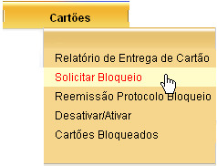 Você pode reemitir o protocolo de bloqueio na opção CARTÕES à REEMISSÃO DE PROTOCOLO DE BLOQUEIO.