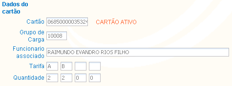 2. Na exibição do resultado verifique os dados do cartão e seu status.