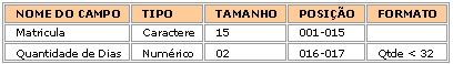 Estrutura do arquivo para realizar o pedido de carga.